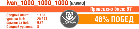 | Класс | Нация | Уровень | Корабль | Боев | Процент побед | Опыт | Урон | Потоплено кораблей | Урон по засвету | Выжил | Сбито самолетов | Выстрелов | Точность | Захват | Защита | Потенциалка | Засвечено кораблей | Рекорд опыта | Рекорд урона | Рекорд потопленных кораблей | Рекорд сбитых самолётов | Рекорд потенциалки | Рекорд засвеченных | Рекорд урона по засвету | Убил/Убит | PRO alfa | последний бой |