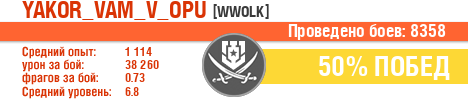 | Класс | Нация | Уровень | Корабль | Боев | Процент побед | Опыт | Урон | Потоплено кораблей | Урон по засвету | Выжил | Сбито самолетов | Выстрелов | Точность | Захват | Защита | Потенциалка | Засвечено кораблей | Рекорд опыта | Рекорд урона | Рекорд потопленных кораблей | Рекорд сбитых самолётов | Рекорд потенциалки | Рекорд засвеченных | Рекорд урона по засвету | Убил/Убит | PRO alfa | последний бой |
