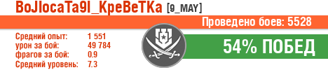 | Класс | Нация | Уровень | Корабль | Боев | Процент побед | Опыт | Урон | Потоплено кораблей | Урон по засвету | Выжил | Сбито самолетов | Выстрелов | Точность | Захват | Защита | Потенциалка | Засвечено кораблей | Рекорд опыта | Рекорд урона | Рекорд потопленных кораблей | Рекорд сбитых самолётов | Рекорд потенциалки | Рекорд засвеченных | Рекорд урона по засвету | Убил/Убит | PRO alfa | последний бой |