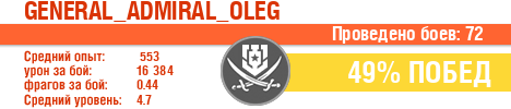 | Класс | Нация | Уровень | Корабль | Боев | Процент побед | Опыт | Урон | Потоплено кораблей | Урон по засвету | Выжил | Сбито самолетов | Выстрелов | Точность | Захват | Защита | Потенциалка | Засвечено кораблей | Рекорд опыта | Рекорд урона | Рекорд потопленных кораблей | Рекорд сбитых самолётов | Рекорд потенциалки | Рекорд засвеченных | Рекорд урона по засвету | Убил/Убит | PRO alfa | последний бой |