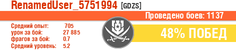 Опыт:7051196 (+7)1323 (+8.3)765 (+1.7)394 (-0.3)1069 (+48.2)