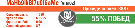 | ЭМ | ussr | 3 | Дерзкий | 9 | 66.67 | 565 | 7277 | 0.44 | 0 | 0 | 0 | 17 | 34.84 | 0 | 0 | 0 | 0 | 1314 | 23554 | 2 | 0 | 0 | 0 | 0 | 0.44 | 50 | 2016-04-26 08:04:34 |