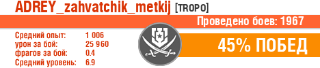 | Опыт: | 1006 | 1419 (+0.2) | 1230 (+17.6) | 1166 (+118.9) | 944 (-65.3) |