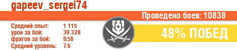 | КР | ussr | 3 | Богатырь | 15 | 60 | 492 | 23837 | 1 | 0 | 26.67 | 0 | 157 | 34.83 | 0 | 0 | 0 | 0 | 1174 | 47063 | 3 | 0 | 0 | 0 | 0 | 1.36 | 840 | 2016-03-25 21:25:07 |