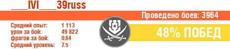 | Класс | Нация | Уровень | Корабль | Боев | Процент побед | Опыт | Урон | Потоплено кораблей | Урон по засвету | Выжил | Сбито самолетов | Выстрелов | Точность | Захват | Защита | Потенциалка | Засвечено кораблей | Рекорд опыта | Рекорд урона | Рекорд потопленных кораблей | Рекорд сбитых самолётов | Рекорд потенциалки | Рекорд засвеченных | Рекорд урона по засвету | Убил/Убит | PRO alfa | последний бой |
