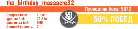 | Класс | Нация | Уровень | Корабль | Боев | Процент побед | Опыт | Урон | Потоплено кораблей | Урон по засвету | Выжил | Сбито самолетов | Выстрелов | Точность | Захват | Защита | Потенциалка | Засвечено кораблей | Рекорд опыта | Рекорд урона | Рекорд потопленных кораблей | Рекорд сбитых самолётов | Рекорд потенциалки | Рекорд засвеченных | Рекорд урона по засвету | Убил/Убит | PRO alfa | последний бой |