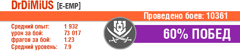 | ЭМ | ussr | 3 | Дерзкий | 11 | 45.45 | 595 | 27749 | 1.64 | 0 | 18.18 | 0 | 60 | 41.63 | 0 | 0 | 0 | 0 | 980 | 60801 | 4 | 0 | 0 | 0 | 0 | 2 | 1865 | 2016-02-07 12:52:45 |
