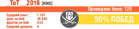 | Боев: | 125 | 2 | 1 | 6 | 116 |