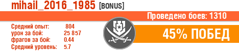 | Боев: | 1310 | 1 | 1 | 4 | 1 | 1 | 28 | 32 | 5 | 25 | 57 | 309 | 29 | 17 | 594 | 359 |