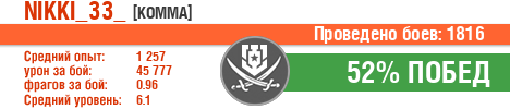| КР | ussr | 3 | Богатырь | 9 | 66.67 | 666 | 24310 | 1.11 | 0 | 33.33 | 0 | 146 | 40.94 | 0 | 0 | 0 | 0 | 1089 | 45844 | 2 | 0 | 0 | 0 | 0 | 1.67 | 897 | 2016-07-21 20:30:28 |