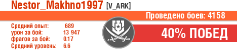 | Класс | Нация | Уровень | Корабль | Боев | Процент побед | Опыт | Урон | Потоплено кораблей | Урон по засвету | Выжил | Сбито самолетов | Выстрелов | Точность | Захват | Защита | Потенциалка | Засвечено кораблей | Рекорд опыта | Рекорд урона | Рекорд потопленных кораблей | Рекорд сбитых самолётов | Рекорд потенциалки | Рекорд засвеченных | Рекорд урона по засвету | Убил/Убит | PRO alfa | последний бой |