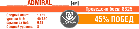 | Класс | Нация | Уровень | Корабль | Боев | Процент побед | Опыт | Урон | Потоплено кораблей | Урон по засвету | Выжил | Сбито самолетов | Выстрелов | Точность | Захват | Защита | Потенциалка | Засвечено кораблей | Рекорд опыта | Рекорд урона | Рекорд потопленных кораблей | Рекорд сбитых самолётов | Рекорд потенциалки | Рекорд засвеченных | Рекорд урона по засвету | Убил/Убит | PRO alfa | последний бой |