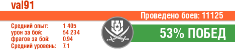 | Боев: | 11125 | 2 | 1 | 9 | 2 | 14 | 33 | 7 | 4 | 27 | 14 | 378 | 376 | 743 | 1432 |