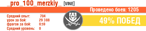 | ЭМ | ussr | 2 | Сторожевой | 9 | 33.33 | 311 | 11051 | 0.67 | 1447 | 0 | 0 | 20 | 37.16 | 1.44 | 0 | 116455 | 1.11 | 457 | 20044 | 2 | 0 | 162400 | 2 | 3150 | 0.67 | 1096 | 2017-02-06 21:09:25 |
