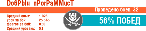| Класс | Нация | Уровень | Корабль | Боев | Процент побед | Опыт | Урон | Потоплено кораблей | Урон по засвету | Выжил | Сбито самолетов | Выстрелов | Точность | Захват | Защита | Потенциалка | Засвечено кораблей | Рекорд опыта | Рекорд урона | Рекорд потопленных кораблей | Рекорд сбитых самолётов | Рекорд потенциалки | Рекорд засвеченных | Рекорд урона по засвету | Убил/Убит | PRO alfa | последний бой |