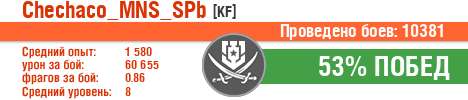 | КР | ussr | 6 | Будённый | 19 | 68.42 | 1442 | 33586 | 0.84 | 0 | 36.84 | 1.21 | 323 | 20.13 | 5.37 | 11.58 | 553352 | 0.32 | 2868 | 60939 | 3 | 8 | 1051900 | 2 | 0 | 1.33 | 1559 | 2026-01-21 22:15:56 |