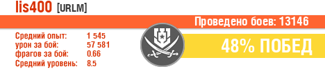 | Урон: | 57579 | 105618 (+7.3) | 80285 (+5.2) | 50034 (-5.2) | 92502 (+16) | 67508 (+8.3) | 73109 (+80.8) | 70485 (+169.2) | 71043 (+162.8) | 76403 (+249.7) | 75707 (+284.4) | 73109 (+80.8) | 78802 (+4344.9) | 65400 (+1805.8) | 67387 (+2985) | 45997 (-2694.5) |