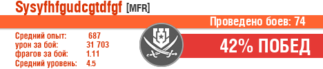 | Класс | Нация | Уровень | Корабль | Боев | Процент побед | Опыт | Урон | Потоплено кораблей | Урон по засвету | Выжил | Сбито самолетов | Выстрелов | Точность | Захват | Защита | Потенциалка | Засвечено кораблей | Рекорд опыта | Рекорд урона | Рекорд потопленных кораблей | Рекорд сбитых самолётов | Рекорд потенциалки | Рекорд засвеченных | Рекорд урона по засвету | Убил/Убит | PRO alfa | последний бой |