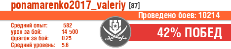 | Класс | Нация | Уровень | Корабль | Боев | Процент побед | Опыт | Урон | Потоплено кораблей | Урон по засвету | Выжил | Сбито самолетов | Выстрелов | Точность | Захват | Защита | Потенциалка | Засвечено кораблей | Рекорд опыта | Рекорд урона | Рекорд потопленных кораблей | Рекорд сбитых самолётов | Рекорд потенциалки | Рекорд засвеченных | Рекорд урона по засвету | Убил/Убит | PRO alfa | последний бой |