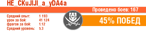 | Класс | Нация | Уровень | Корабль | Боев | Процент побед | Опыт | Урон | Потоплено кораблей | Урон по засвету | Выжил | Сбито самолетов | Выстрелов | Точность | Захват | Защита | Потенциалка | Засвечено кораблей | Рекорд опыта | Рекорд урона | Рекорд потопленных кораблей | Рекорд сбитых самолётов | Рекорд потенциалки | Рекорд засвеченных | Рекорд урона по засвету | Убил/Убит | PRO alfa | последний бой |