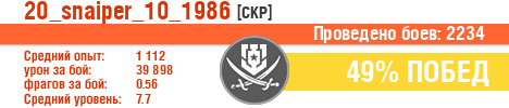 | КР | ussr | 8 | Пётр Багратион | 5 | 20 | 712 | 18481 | 0 | 5394 | 0 | 4.6 | 91 | 33.55 | 0 | 0 | 682511 | 0 | 1149 | 34108 | 0 | 19 | 1097160 | 0 | 14424 | 0 | 0 | 2024-11-14 23:30:06 |