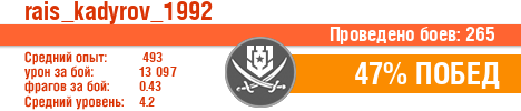 | КР | ussr | 6 | Будённый | 65 | 43.08 | 602 | 13534 | 0.28 | 8088 | 20 | 0.51 | 203 | 17.82 | 1.51 | 2.2 | 553780 | 0.43 | 1332 | 41653 | 3 | 8 | 1332400 | 3 | 49549 | 0.35 | 0 | 2019-03-19 22:48:53 |