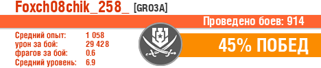 | Класс | Нация | Уровень | Корабль | Боев | Процент побед | Опыт | Урон | Потоплено кораблей | Урон по засвету | Выжил | Сбито самолетов | Выстрелов | Точность | Захват | Защита | Потенциалка | Засвечено кораблей | Рекорд опыта | Рекорд урона | Рекорд потопленных кораблей | Рекорд сбитых самолётов | Рекорд потенциалки | Рекорд засвеченных | Рекорд урона по засвету | Убил/Убит | PRO alfa | последний бой |